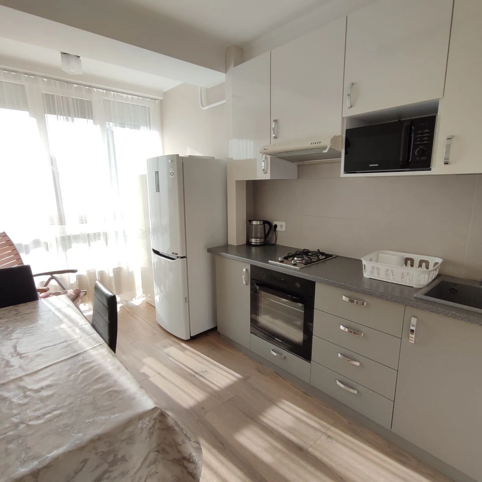 Сдаётся уютная, тёплая и тихая квартира на долгий срок. Полностью оборудована мебелью и техникой для комфортного проживания. Жилой комплекс оснащён видеонаблюдением. Рядом — магазины, остановки общественного транспорта и публичные парковки.