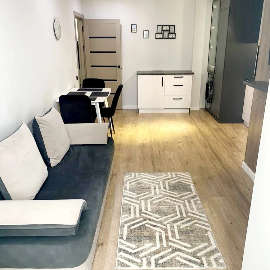 Состоит из: прихожей, кухни с ливингом, спальни, комнаты отдыха, ванная комната, душевая с санузлом.
