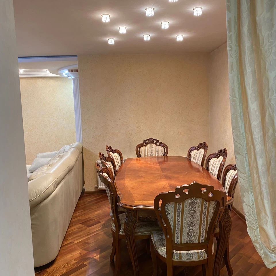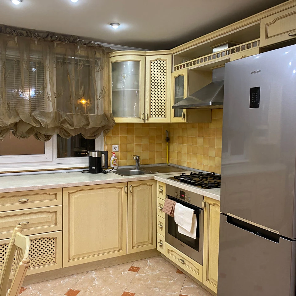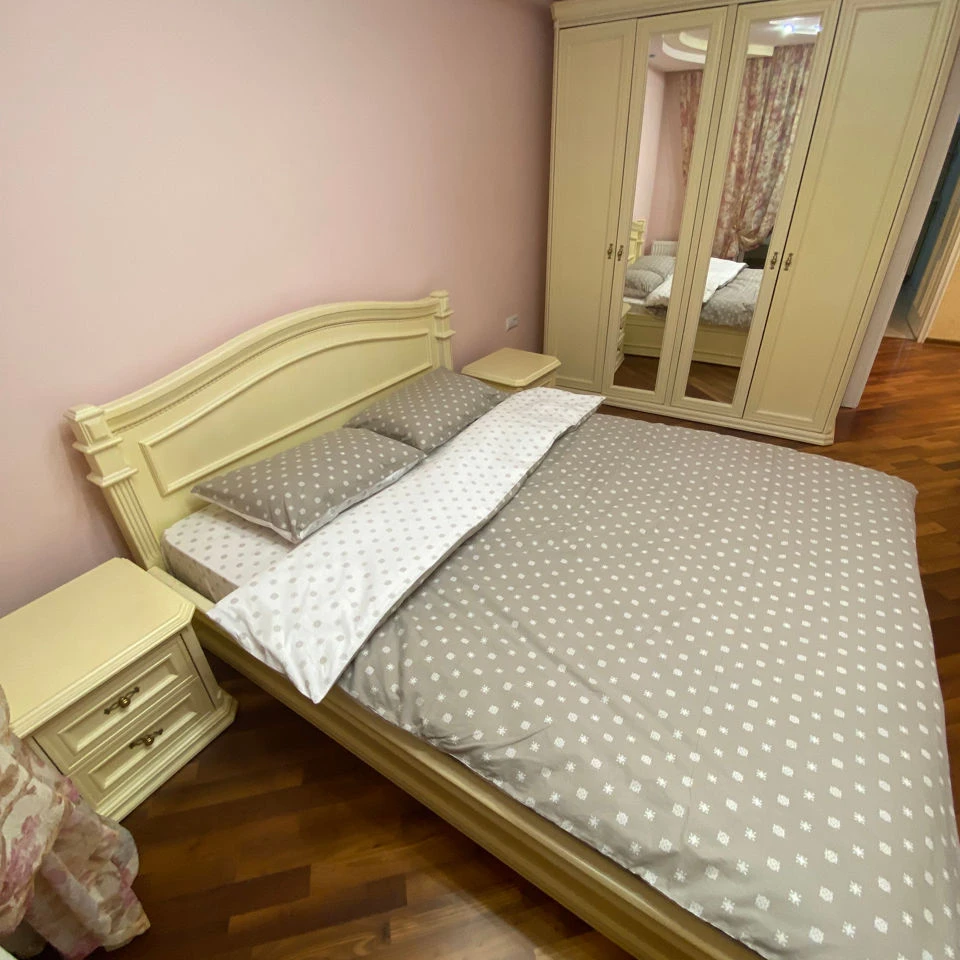 Двухкомнатная. Имеется холодильник, телевизор, Интернет-высокоскоростной, wi-fi, 2 ванные комнаты и туалет разделены. Рядом находится парк, детская площадка, маркеты, парковка