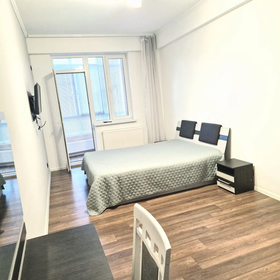 2-комнатная квартира. Имеется кондиционер, стиральная машинка, микроволновка, духовка, кухня, TV, подключен Интернет (WiFi), четыре спальных места (кровать king-size и раздвижной диван), парковочные места под домом и наземная. Продуктовый магазин на углу дома, рядом учебные заведения, супермаркеты, fitness, детские площадки, рестораны, клиники, больницы, аптеки, транспорт..