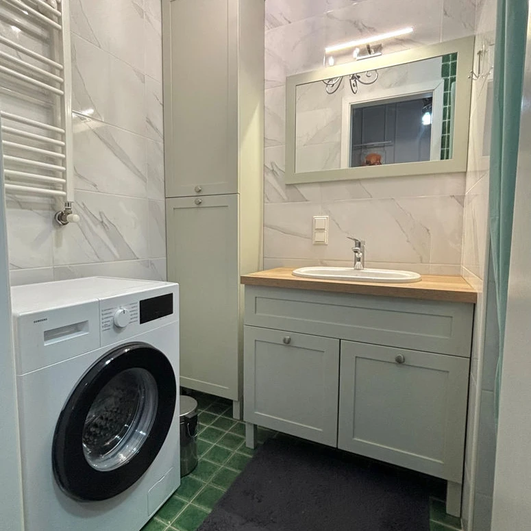 Fully equipped with everything necessary for comfortable living! All windows have external blackout roller shutters. автономное отопление (independent heating), air conditioning, Smart TV, internet, dishes, and bed linen are all included.